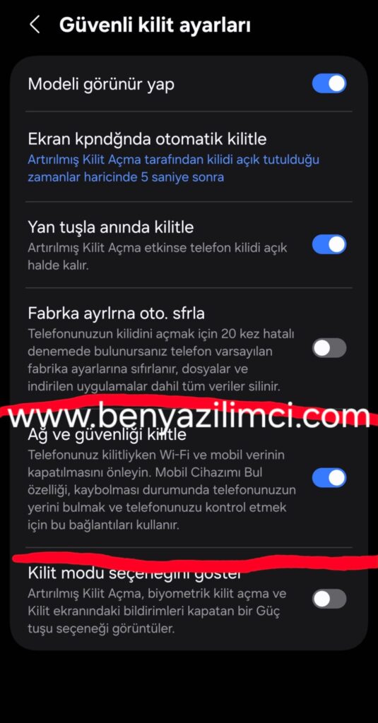 Daha sonra açılan ekranda “Güvenli Kilit Ayarları” seçeneğini bulalım ve bu seçeneğe tıklayalım.